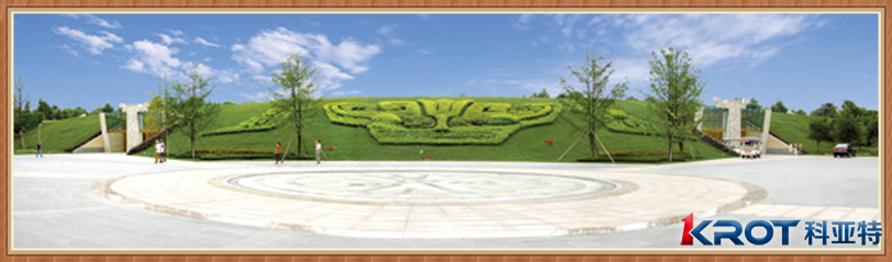 三星堆博物馆占地面积约33公顷,绿化面积达80%以上,馆区内环境优美、布局动静得宜,曲径敞道,垂柳依依、古蜀奇葩、湖光岛影无处不体现了人文与自然完美结合、飘逸自然、浑然天成的川西园林特色。博物馆主体建筑外形追求与地貌、史迹及文物造型艺术相结合的神韵,融原始意味和现代气息为一体。一展馆建筑为半弧形斜坡生态式建筑,张扬人与自然和谐共生的人文精神,二展馆建筑为三部一体的变形螺旋式建筑,其整体具有“堆列三星”与“人类历史演进历程”的双重象征,馆外还有气势灰宏的仿古祭祀台和供现代文体活动的大型表演场与展馆建筑遥相呼应,表达了三星堆文化苍古雄浑、博大精深的历史意蕴。